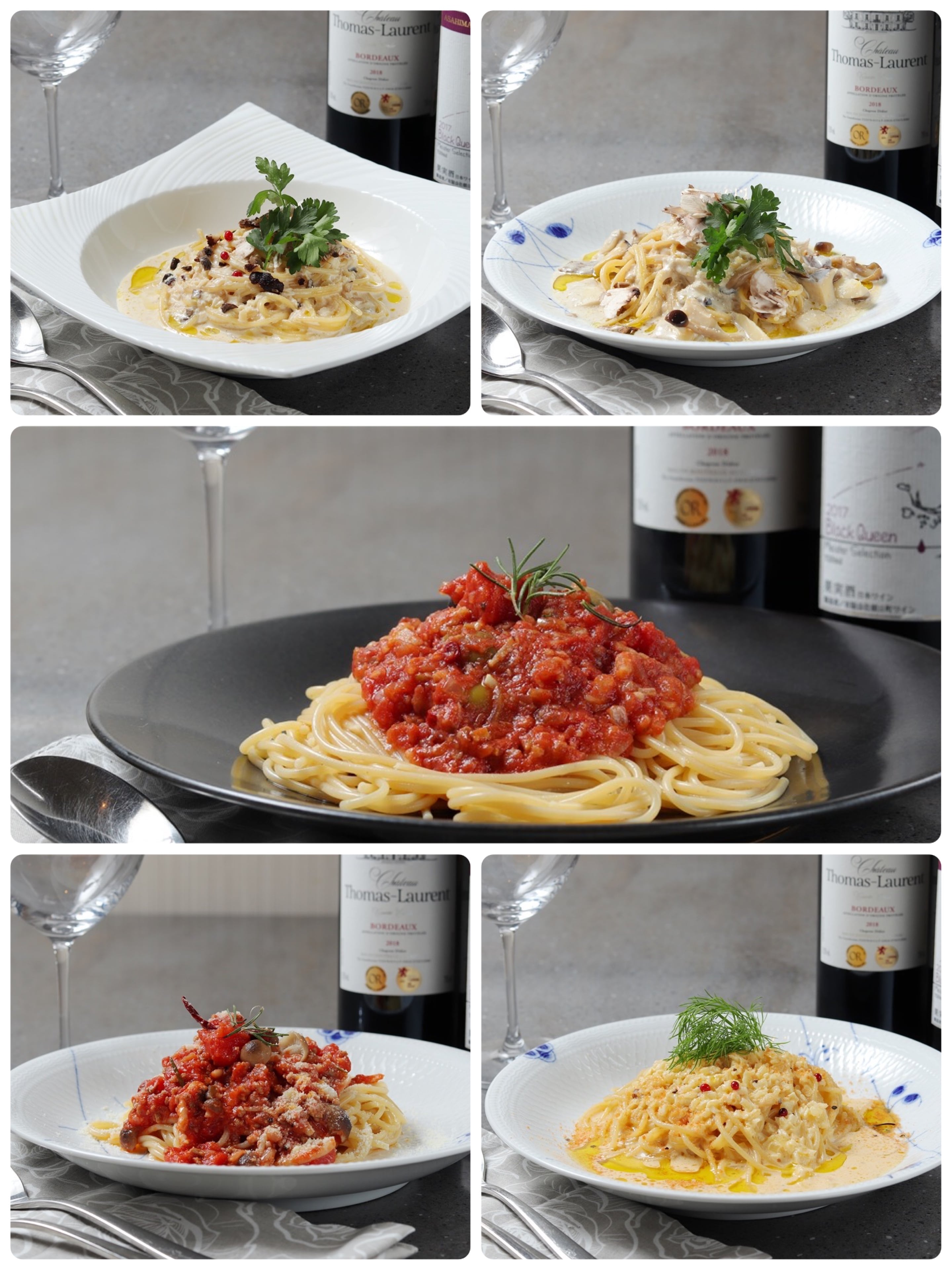 セット内容:溢れ出る絶望パスタ、トリュフの絶賛、リッチなウニのご褒美、ポルチーニの女神(ビーナス)、絶望パスタ(ミート)